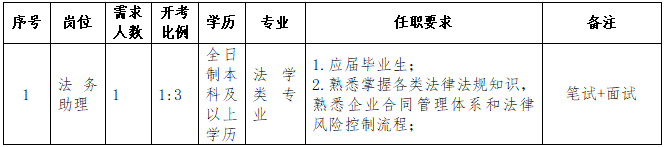 南通吕四港城市发展有限公司因业务发展需要,经研究决定,面向社会公开招聘法务助理1名(劳务派遣)。现将有关事项公告如下: